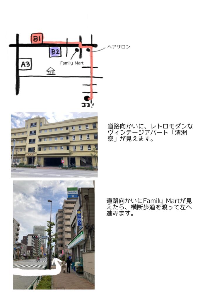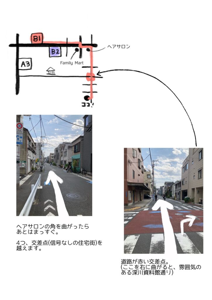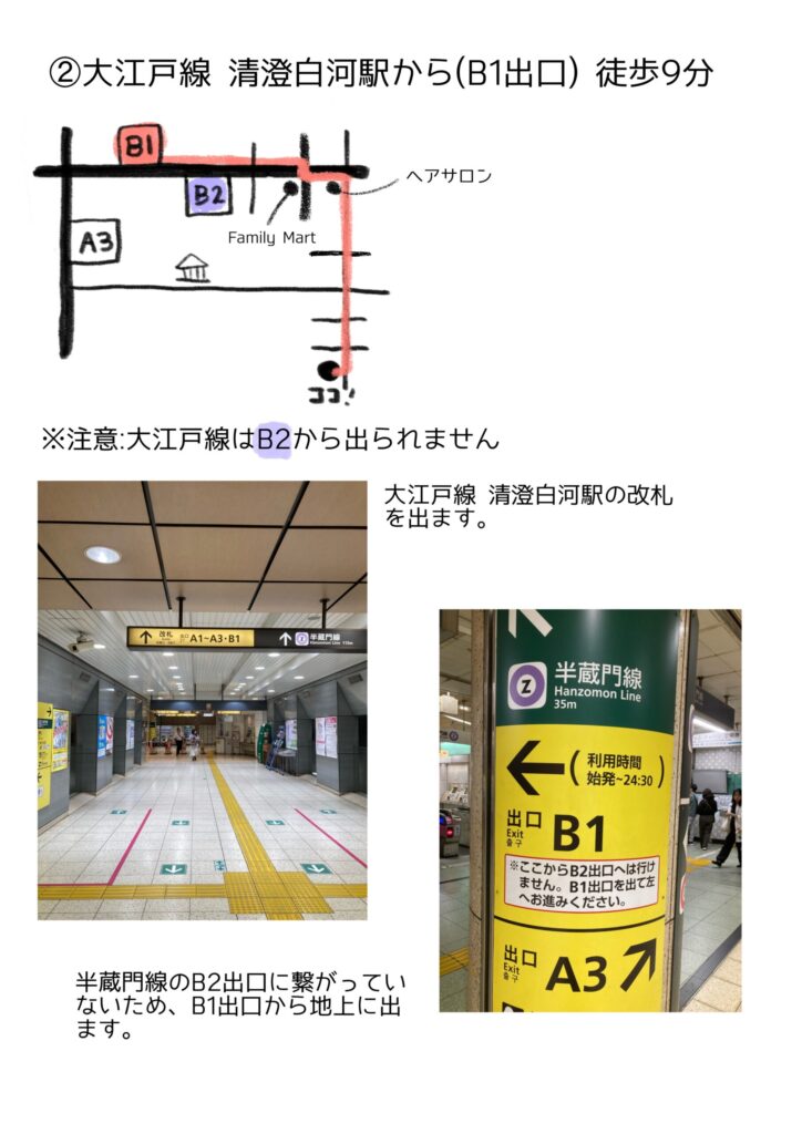 ①はこちら:半蔵門線 清澄白河駅(B2出口)(徒歩7分)(最短ルート)